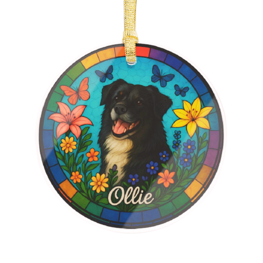 Custom Pet Portrait Stained Glass Ornament β Dog Memorial Gift