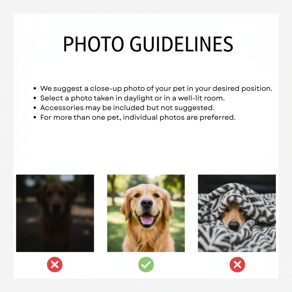- Personalize instantly with our live upload link — add your pet’s name or include multiple pets